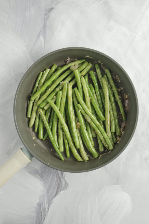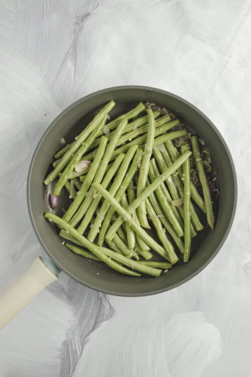 - Sauté for 6-8 minutes until beans are tender-crisp, uncovering occasionally to stir and prevent burning the garlic.