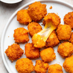 With a lower melting point than many firmer cheeses, cheddar is best fried after it’s been chilled in the freezer for around 30 minutes. So, to avoid any cheese oozing out of the breading while frying, make sure it’s cold first. This will help the cheese cubes stay solid until you pull them apart with that first satisfying bite.