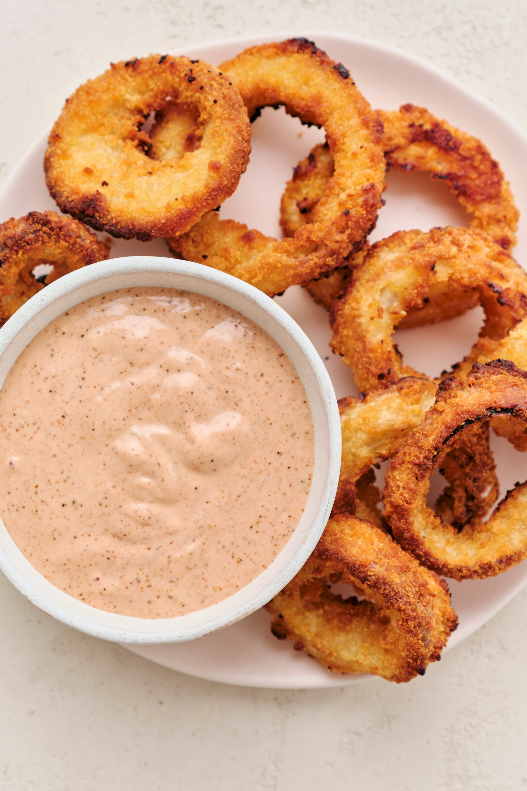 Crispy, golden-brown onion rings wouldn’t be complete without a creamy, tangy dipping sauce!