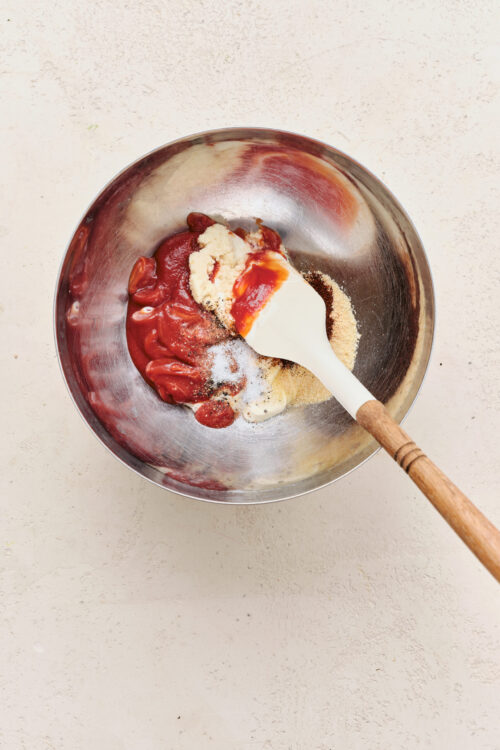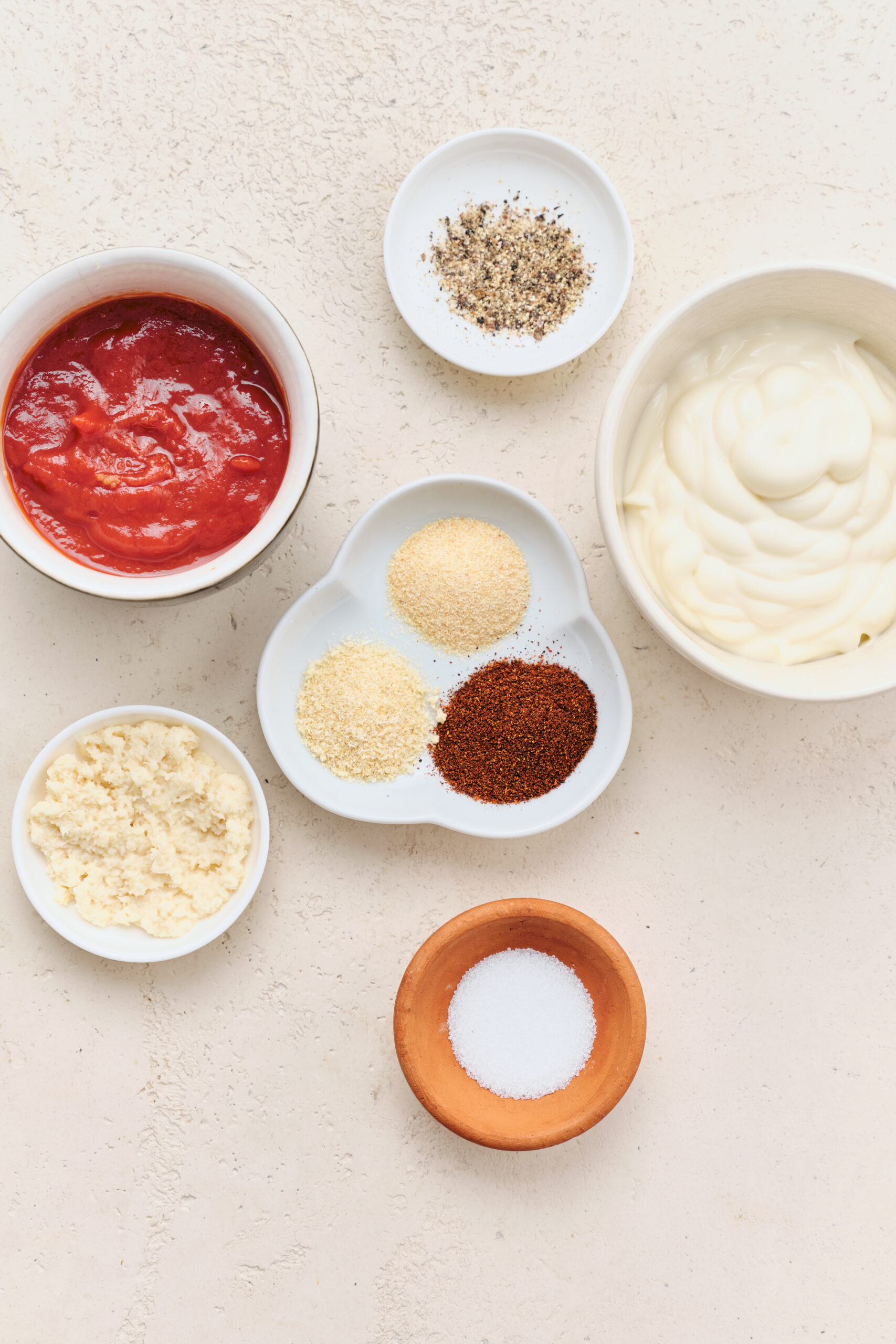 - In a bowl, add the mayonnaise, ketchup, prepared horseradish, smoked paprika, garlic powder, onion powder, cracked black pepper, and salt. Whisk the ingredients until the sauce is smooth.