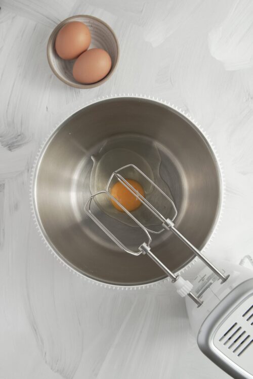 - Beat eggs in a bowl with an electric mixer until thick and pale yellow, about 3 to 5 minutes. Mix in the milk and vanilla.