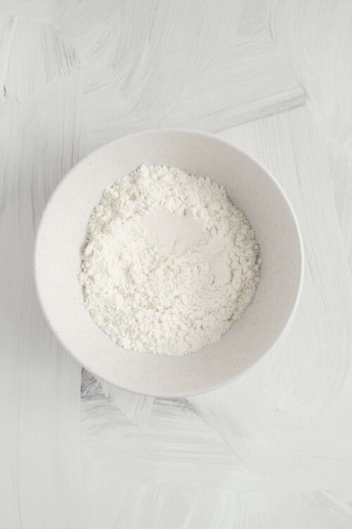 - Sift together the flour, sugar, and salt in a separate bowl.